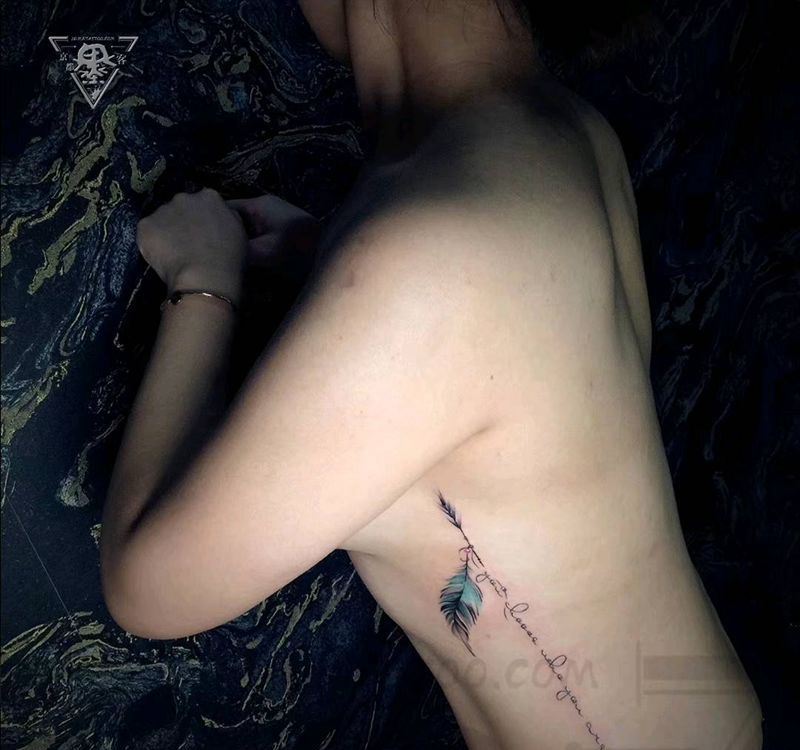 纹身/刺青/羽毛纹身纹身图片_腰部背部水彩水墨纹身图案