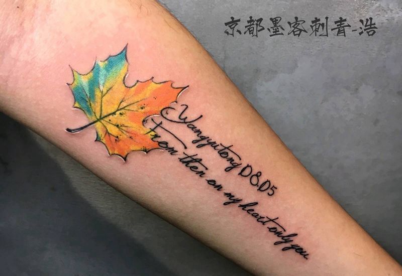 纹身/刺青/落叶纹身图片_胸部手臂水彩New School纹身图案