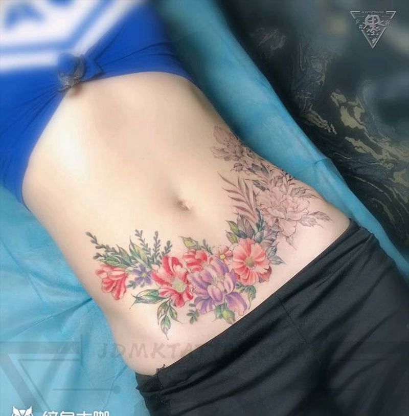 时尚性感的腹部莲花纹