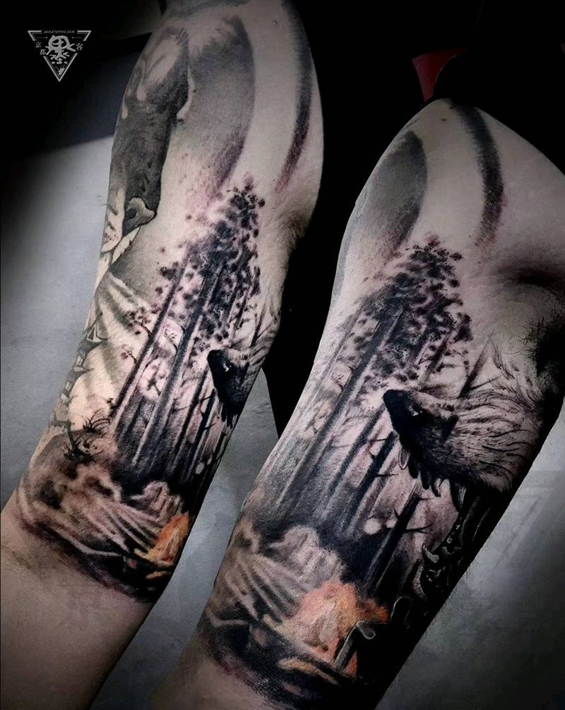 当前位置: 首页 >北京市纹身店-京都墨客刺青纹身图案>纹身/刺青纹身图片_手臂腿部欧美写实水墨纹身图案