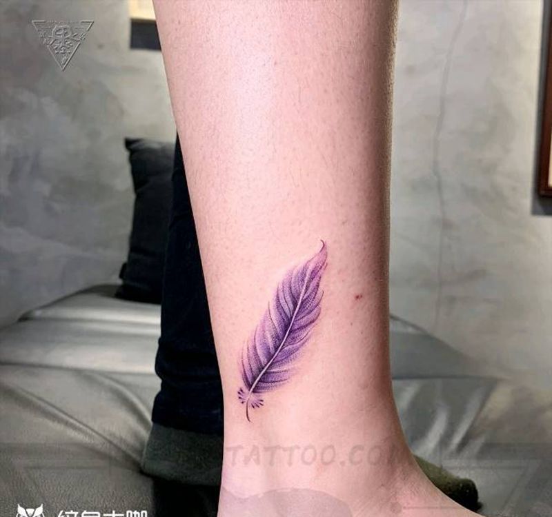 纹身/刺青/羽毛纹身纹身图片_腿部胸部水彩羽毛纹身图案