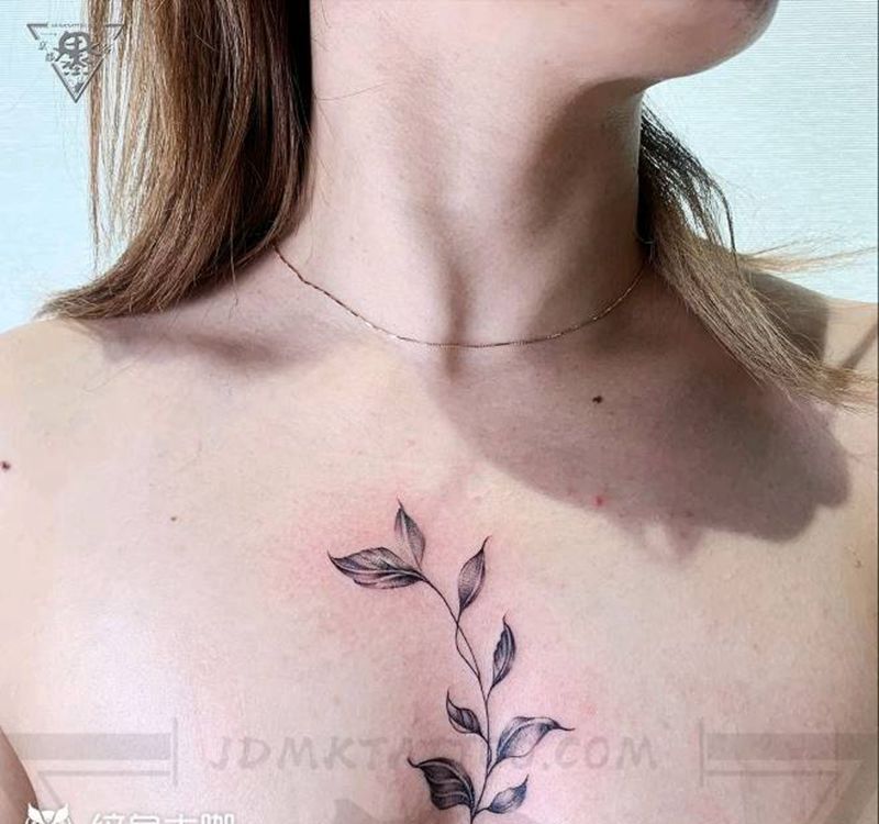 纹身/刺青/叶子纹身图片_胸部小清新纹身图案