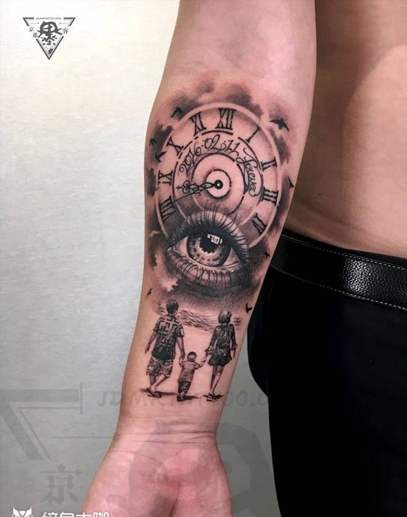 • T家庭图,一家四口生日纪念!纹身图片_手臂纹身图案