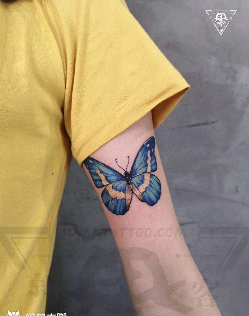 当前位置: 首页 >北京市纹身店-京都墨客刺青纹身图案>纹身/刺青/蝴蝶纹身图片_手臂水彩New School蝴蝶纹身图案