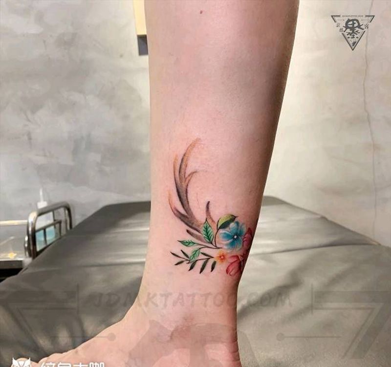 纹身/刺青/鹿角纹身图片_脚部水彩鹿角花小清新纹身图案