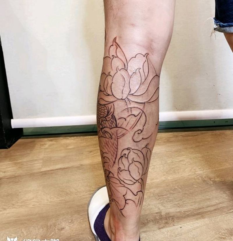 一组15张莲花纹身手