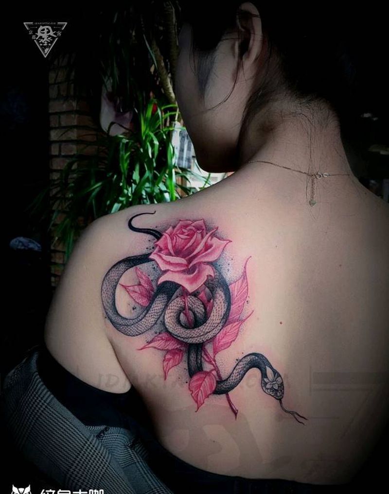 纹身/刺青/蛇纹身纹身图片_手臂背部新传统水墨蛇纹身图案