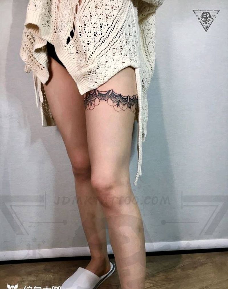 纹身/刺青/蕾丝纹身纹身图片_腿部几何蕾丝纹身纹身图案