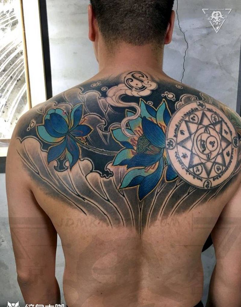 一组15张莲花纹身手