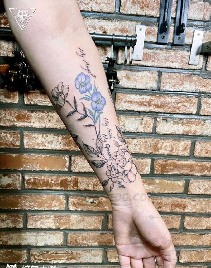 当前位置: 首页 >北京市纹身店-京都墨客刺青纹身图案>纹身/刺青纹身图片_手臂点刺新传统素花母爱小清新纹身图案