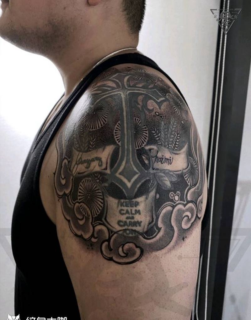 • 纹身吧推荐的披肩图腾半胛纹身图案作品展示