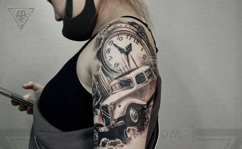 纹身/刺青/写实/水墨纹身图片_手臂背部水墨欧美写实纹身图案