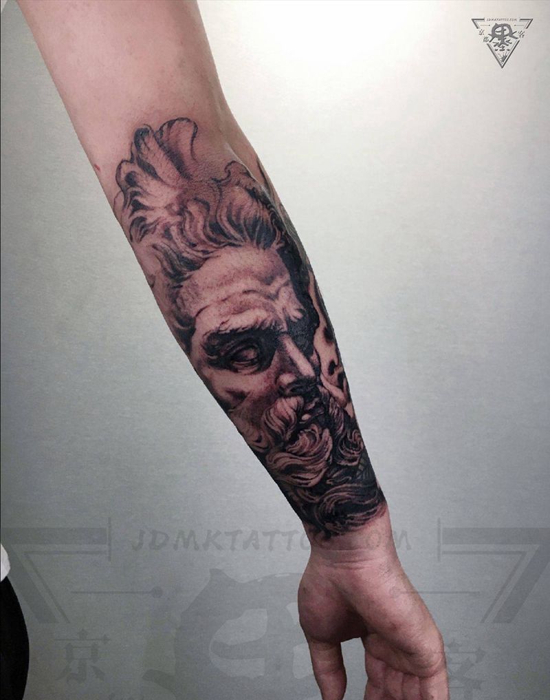 纹身/刺青/写实纹身/波塞冬纹身图片_手臂欧美写实波塞冬纹身图案