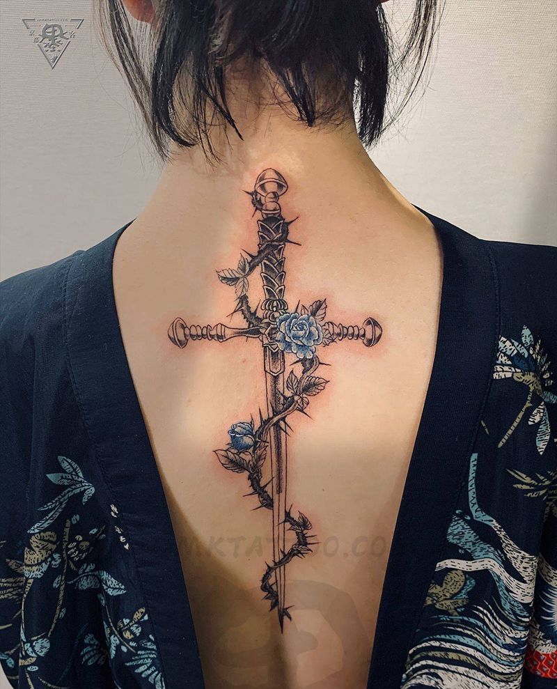 黑灰满背纹身图案