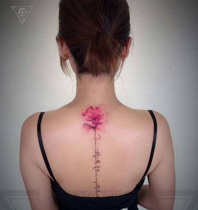 纹身/刺青/脊柱纹身纹身图片_背部水彩脊柱纹身纹身图案