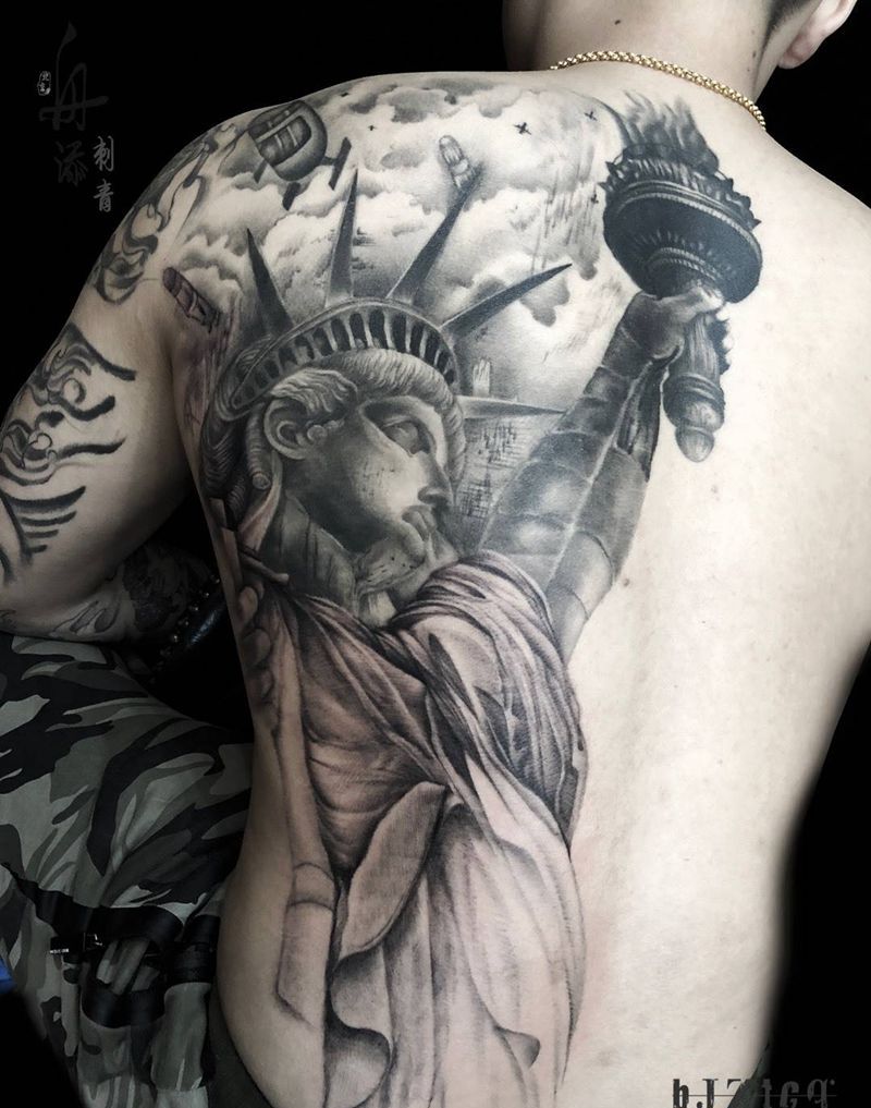 当前位置: 首页 >北京市纹身店-北京舟添刺青纹身图案>半背自由女神