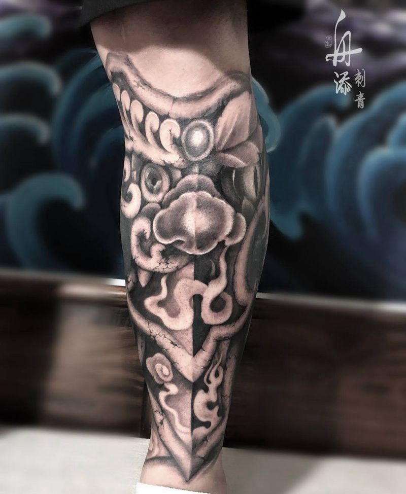 当前位置: 首页 >北京市纹身店-北京舟添刺青纹身图案>包小腿纹身图片_成品腿部欧美写实动物鬼神原创纹身图案