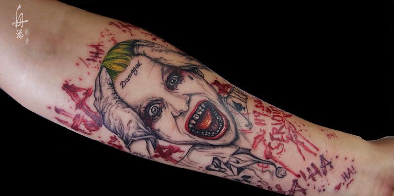 当前位置: 首页 >北京市纹身店-北京舟添刺青纹身图案>小丑纹身图片_手臂欧美写实小丑涂鸦纹身图案