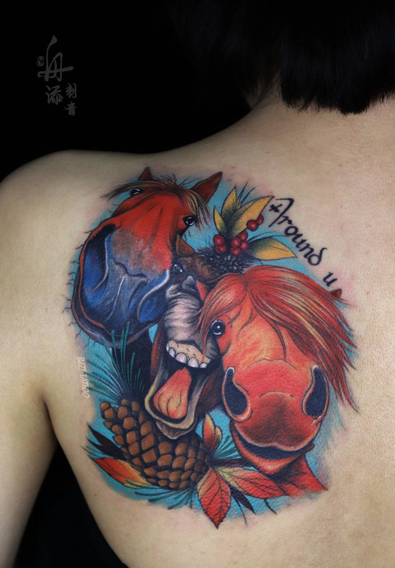 当前位置: 首页 >北京市纹身店-北京舟添刺青纹身图案>马纹身图片_肩部背部水彩New School纹身图案