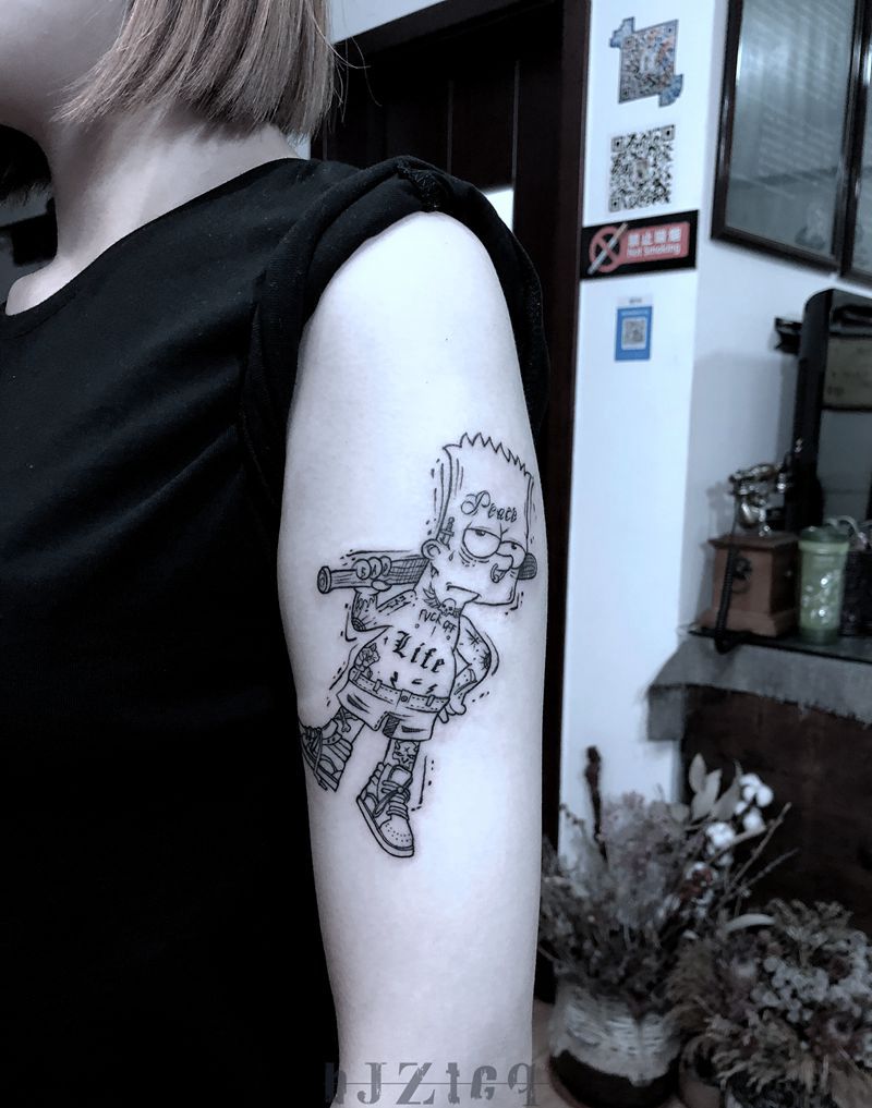 当前位置: 首页 >北京市纹身店-北京舟添刺青纹身图案>辛普森纹身图片_手臂点刺卡通辛普森纹身图案
