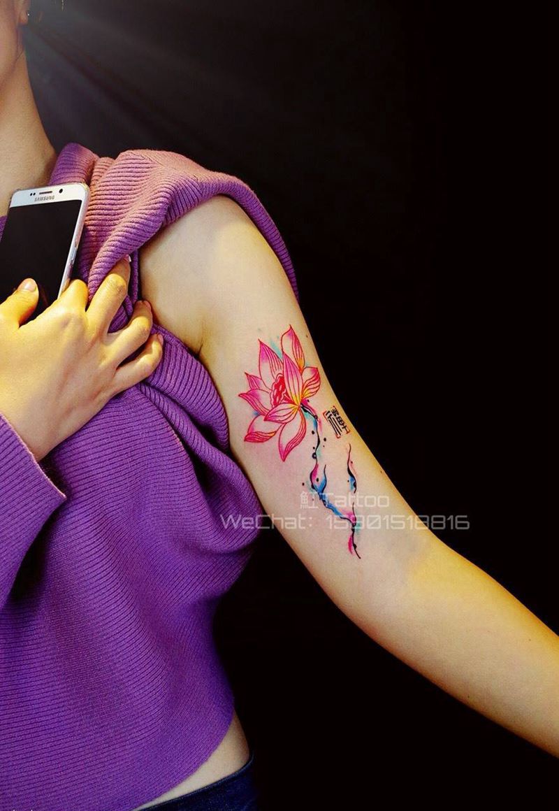 原创水彩莲花~纹身图片_成品手稿手臂清新原创植物纹身图案