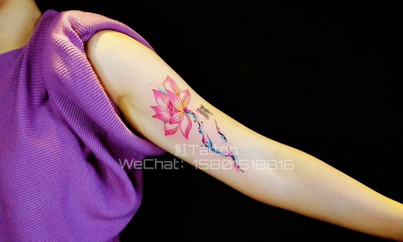 原创水彩莲花~纹身图片_成品手稿手臂清新原创植物纹身图案