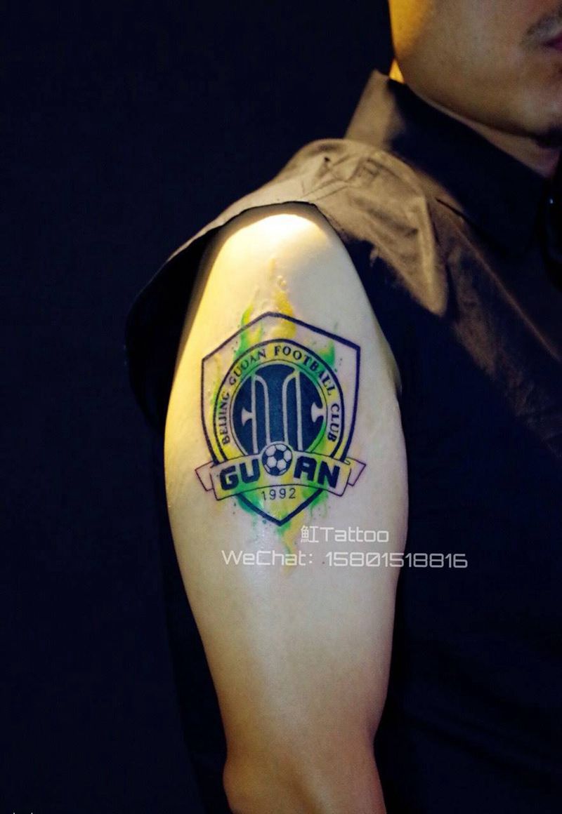 原创水彩国安队标~纹身图片_成品手稿手臂清新原创纹身图案