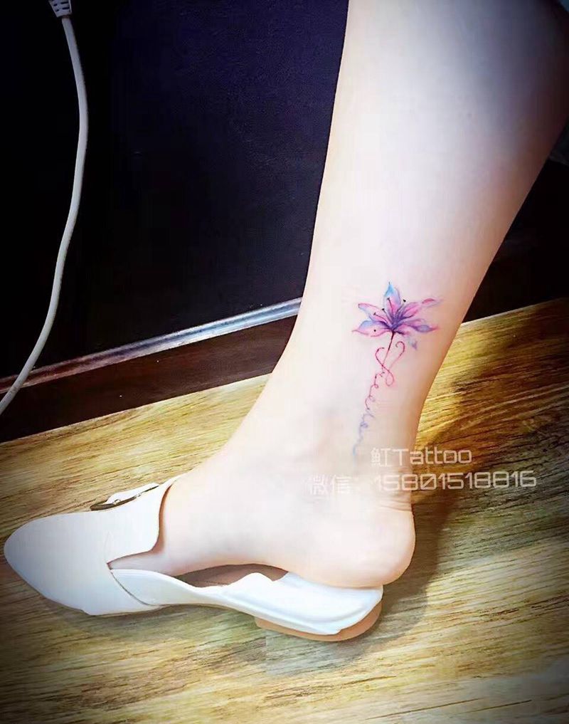 近期脚踝小情绪作品纹身图片_成品脚部清新静物植物纹身图案