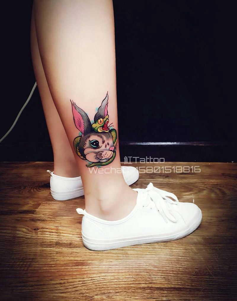 当前位置: 首页 >北京市纹身店-魟Tattoo-纹身设计工作室纹身图案>蛇与兔纹身图片_成品手稿腿部清新动物原创纹身图案