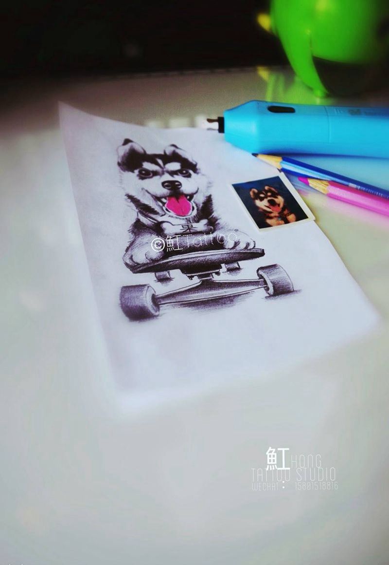 原创设计-二哈纹身图片_手稿手臂腿部肩部写实欧美清新肖像原创动物纹身图案