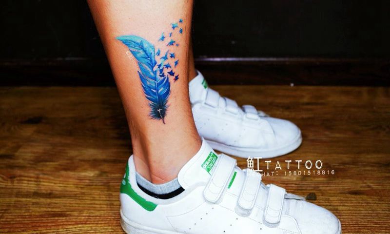 羽毛&飞鸟纹身图片_成品手稿腿部清新欧美原创静物纹身图案