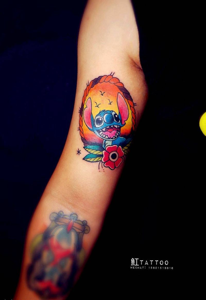 史迪奇纹身图片_成品手稿手臂原创清新欧美人物纹身图案