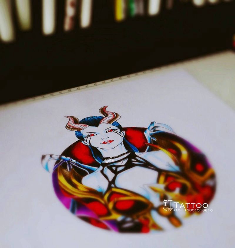 当前位置: 首页 >北京市纹身店-魟Tattoo-纹身设计工作室纹身图案>Dota2痛苦女王纹身图片_成品手稿欧美肖像原创人物鬼神腿部纹身图案