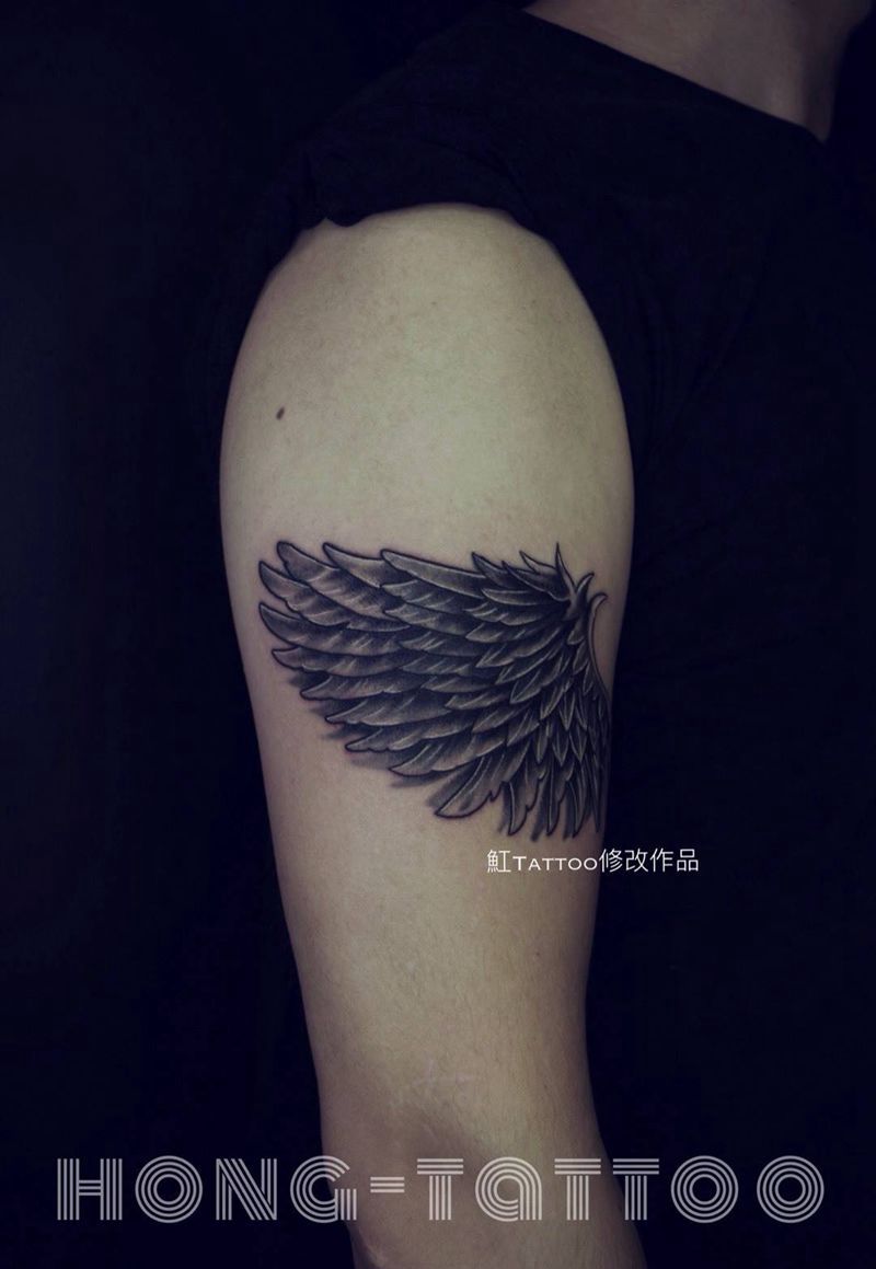 当前位置: 首页 >北京市纹身店-魟Tattoo-纹身设计工作室纹身图案>翅膀纹身图片_成品手臂欧美写实清新鬼神原创纹身图案