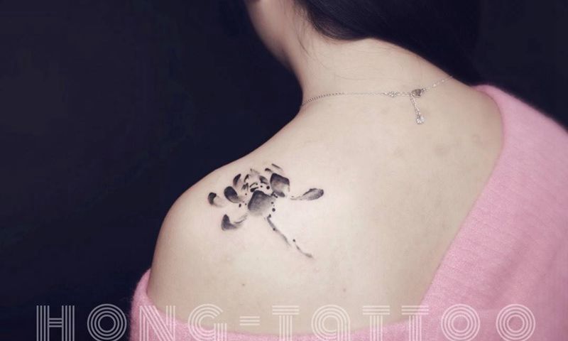 当前位置: 首页 >北京市纹身店-魟Tattoo-纹身设计工作室纹身图案>水墨荷花纹身图片_成品肩部国画传统清新植物纹身图案