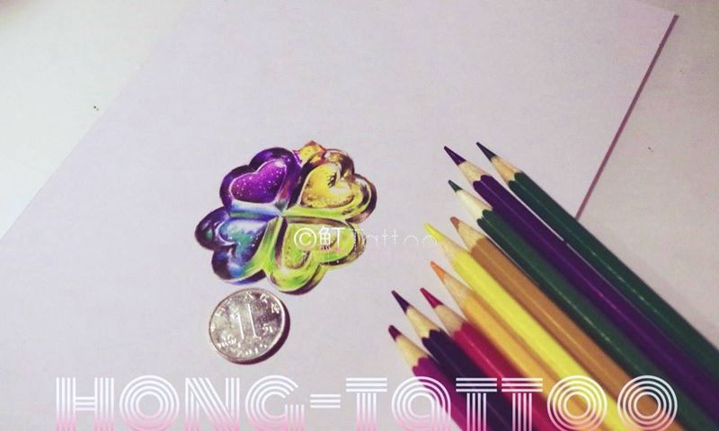 琉璃四叶草纹身图片_成品手稿手臂腿部欧美写实清新原创静物纹身图案