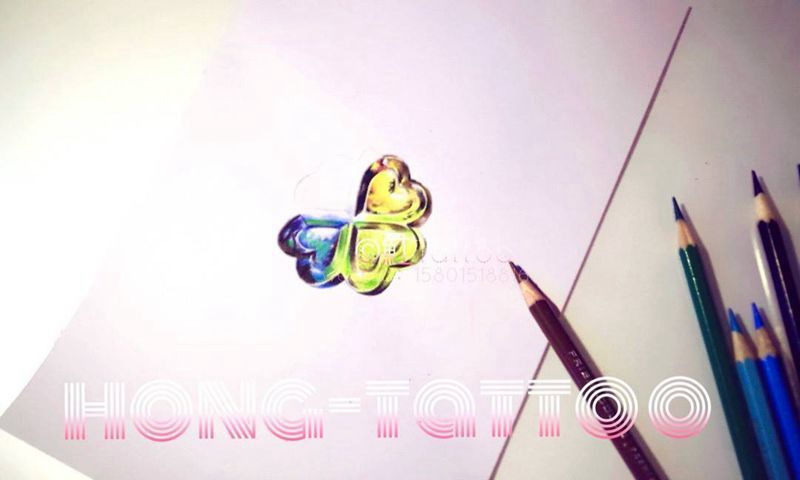 琉璃四叶草纹身图片_成品手稿手臂腿部欧美写实清新原创静物纹身图案