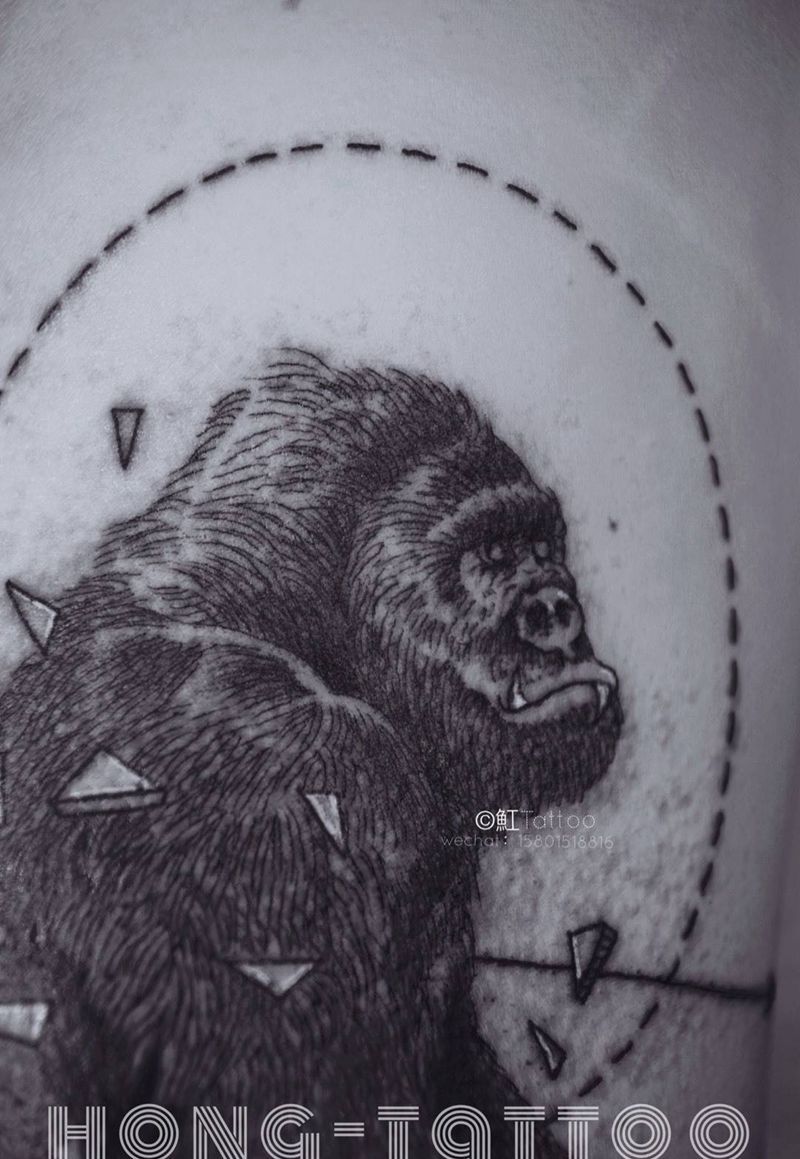 当前位置: 首页 >北京市纹身店-魟Tattoo-纹身设计工作室纹身图案>几何猩猩纹身图片_成品手臂肖像欧美几何动物写实纹身图案