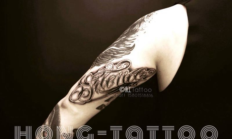 silence纹身图片_成品手稿手臂欧美原创字符写实纹身图案