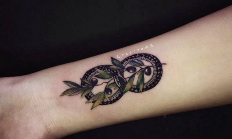 蛇&橄榄枝纹身图片_手臂欧美写实几何蛇橄榄叶橄榄枝纹身图案
