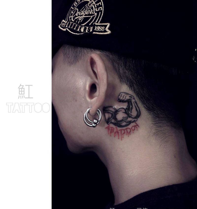 当前位置: 首页 >北京市纹身店-魟Tattoo-纹身设计工作室纹身图案>健身小图纹身图片_手臂颈部Old School花体字健身硬汉硬拉健身举臂健身纹身图案