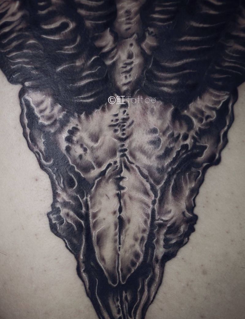 当前位置: 首页 >北京市纹身店-魟Tattoo-纹身设计工作室纹身图案>骷髅羊骨纹身图片_背部欧美写实羊骨撒旦骷髅羊纹身图案
