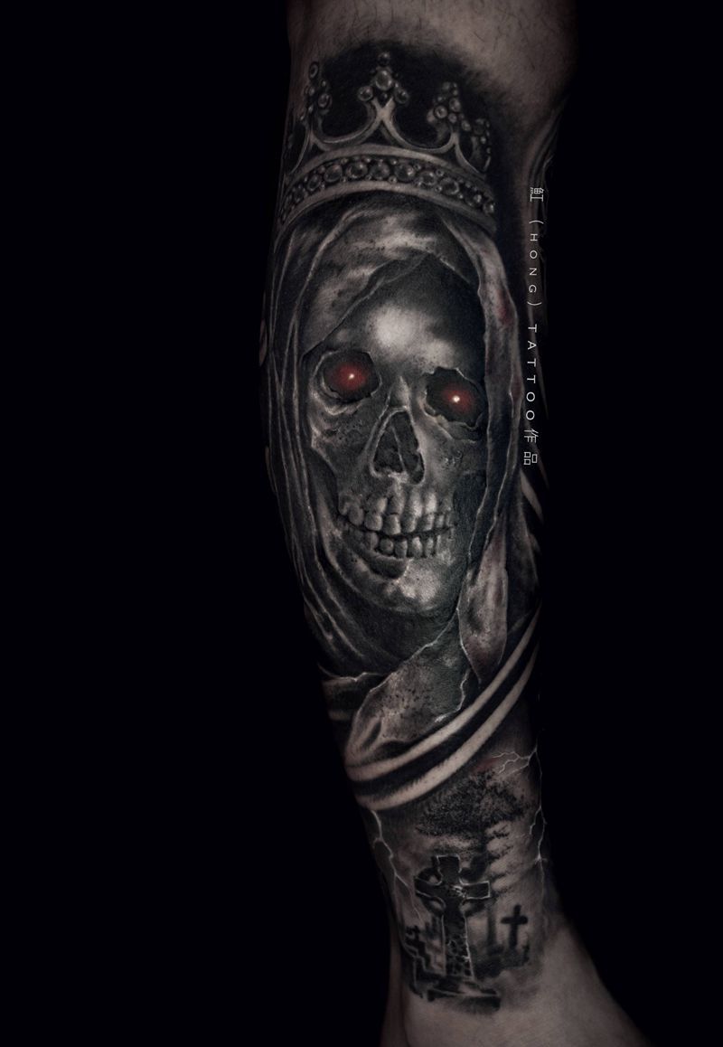 当前位置: 首页 >北京市纹身店-魟Tattoo-纹身设计工作室纹身图案>天使与恶魔-疤痕遮盖纹身图片_腿部欧美写实死神与天使恶魔天使纹身图案