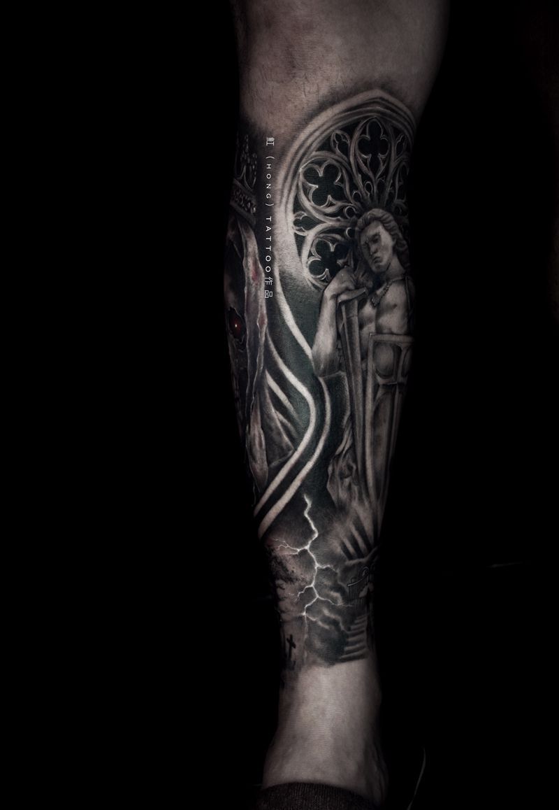 当前位置: 首页 >北京市纹身店-魟Tattoo-纹身设计工作室纹身图案>天使与恶魔-疤痕遮盖纹身图片_腿部欧美写实死神与天使恶魔天使纹身图案