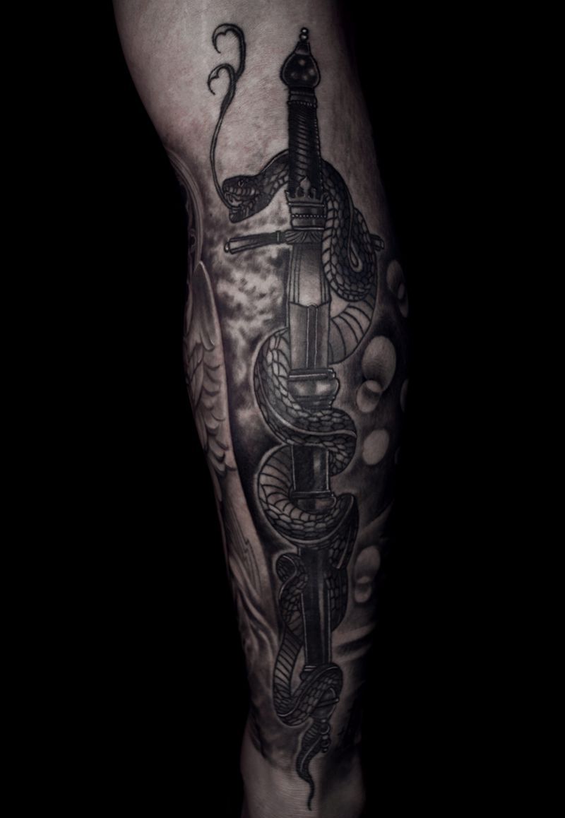 当前位置: 首页 >北京市纹身店-魟Tattoo-纹身设计工作室纹身图案>天使与恶魔-疤痕遮盖纹身图片_腿部欧美写实死神与天使恶魔天使纹身图案