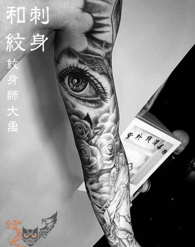 当前位置: 首页 >北京市纹身店-北京和刺纹身艺术工作室纹身图案>欧美拼接纹身图片_成品手臂肩部欧美人物几何字符动物宗教静物纹身图案