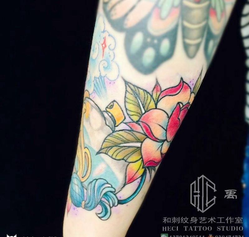 当前位置: 首页 >北京市纹身店-北京和刺纹身艺术工作室纹身图案>香水瓶纹身图片_成品手臂欧美静物纹身图案