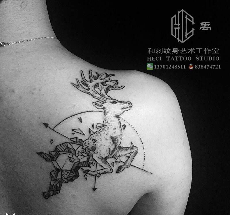 当前位置: 首页 >北京市纹身店-北京和刺纹身艺术工作室纹身图案>鹿纹身图片_成品肩部欧美动物鹿纹身图案
