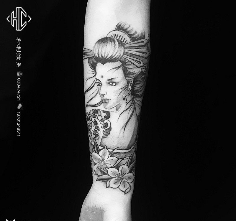 当前位置: 首页 >北京市纹身店-北京和刺纹身艺术工作室纹身图案>美女纹身图片_成品手臂传统清新国画肖像人物美女花旦艺妓纹身图案