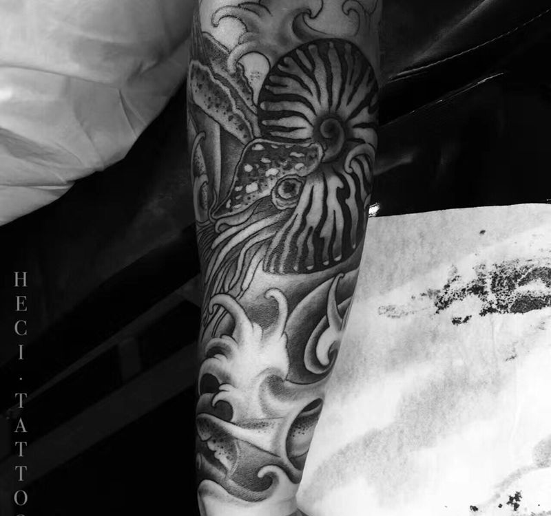 当前位置: 首页 >北京市纹身店-北京和刺纹身艺术工作室纹身图案>海底世界纹身图片_成品手臂欧美写实纹身图案
